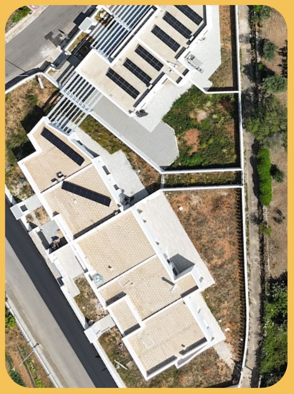 Il Complesso Santorini, con le sue tre villette, visto dall’alto